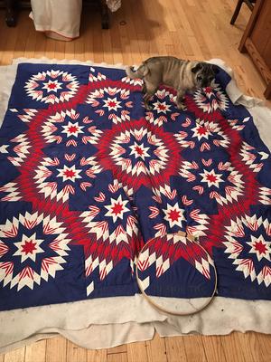 I am now done hand quilting it. It was started in 1988 and I am getting ready to bind it now.