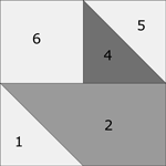 It's a good idea to lay out the #1 light squares, #2 and #3 rectangular patches as shown below. It's much too easy to turn the #1 squares the other way. (The drawn line should touch the upper right corner of the short side of the rectangular patches.)