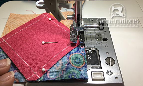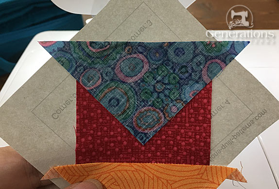 Just as in the paper piecing method, you'll be adding alternate fabrics to opposite sides of the square.