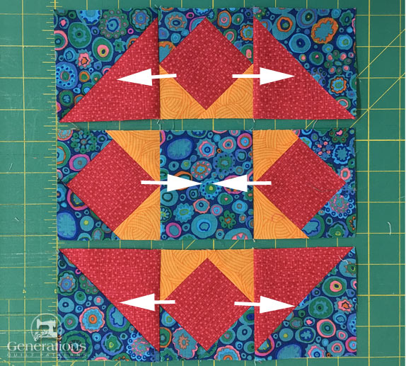 Arrange the units into the Hidden Star design. The background fabric is on all the outside edges.