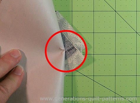 From the printed side, stitch starting about a 1/4" before and ending a 1/4" after the solid line between the Center and #2. (See the red arrows below)